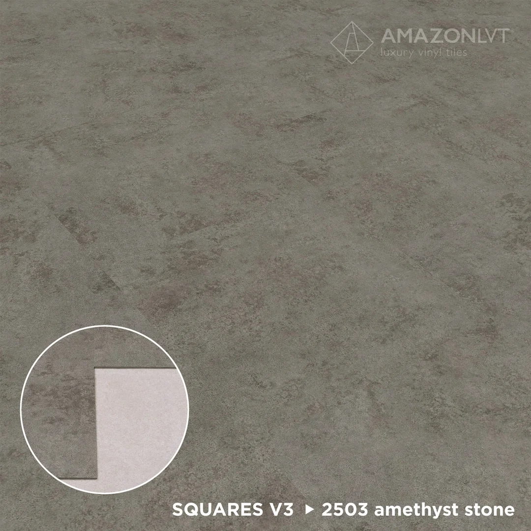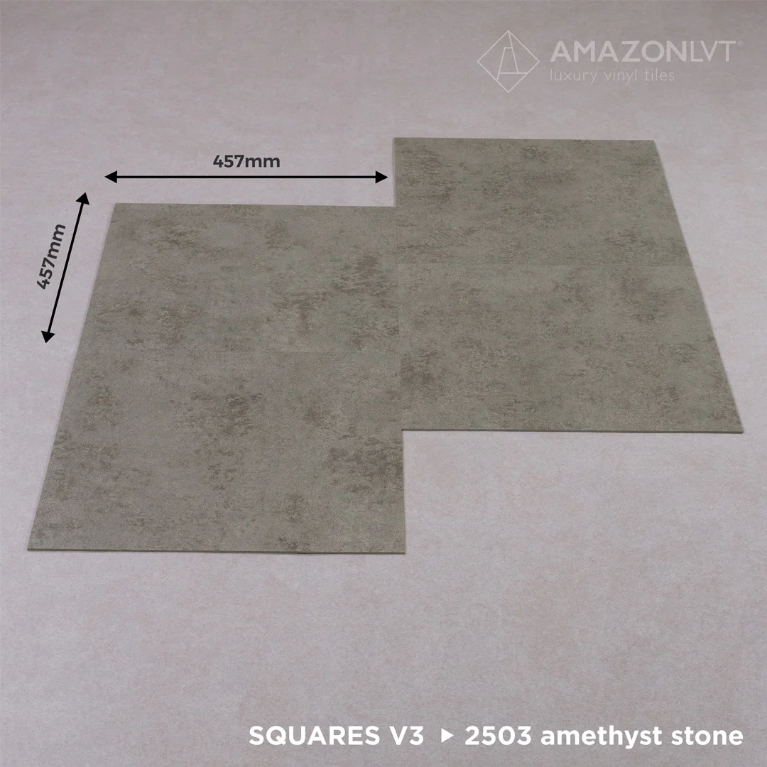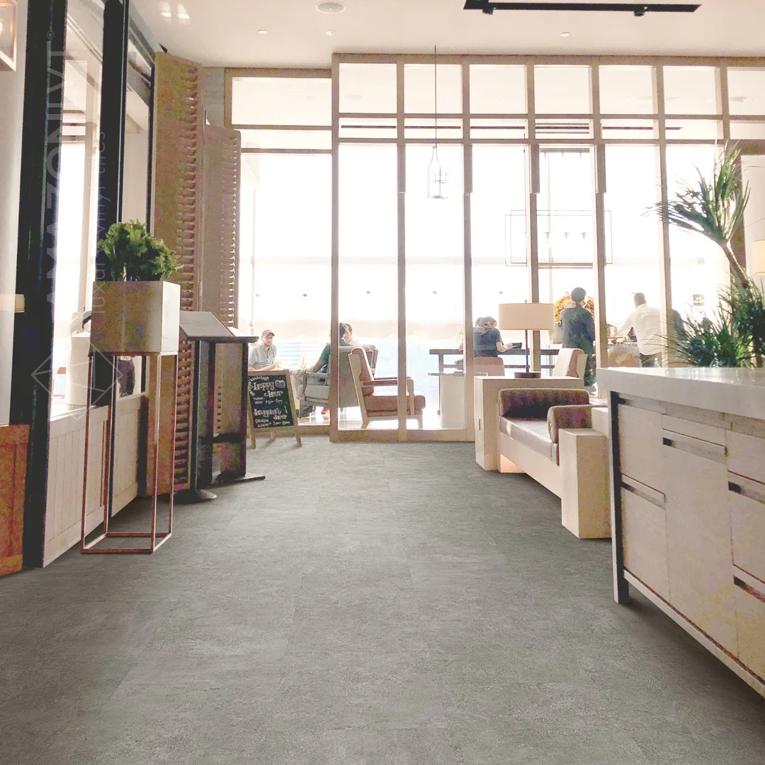 The iconic LVT square series from Korea in granite and stone motifs.